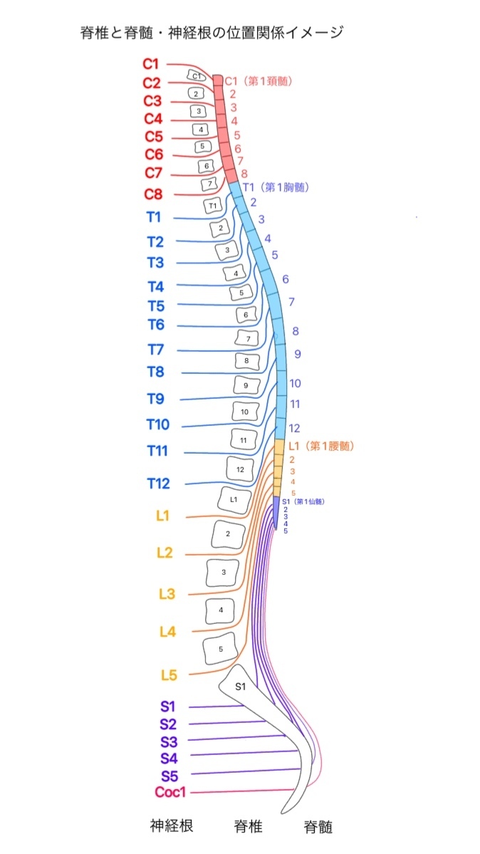 • 尾椎・・・4個(Co1〜Co4)成人では癒合して尾骨になる